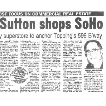 Mr. Sutton owns stakes in more than 120 properties citywide, including 717 Fifth Avenue and 650 Fifth Avenue (in which he, along with SL Green Realty Corporation, acquired a 49-year leasehold in the retail portion last November), and has signed names like Giorgio Armani and Abercrombie & Fitch into flagship stores. He reportedly told a group of Baruch College students recently that his real estate career took off following a chance encounter with a ...
