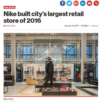 Earlier this year, we revealed that TJX leased a store at 140 West St., which at 68,400 square feet was the largest retail deal completed Downtown in 2016. But the largest retail deal in the city was Nike’s at SL Green and Jeff Sutton’s 650 Fifth Ave., which squeaked by with an extra 814 square feet topping the year at 69,214 feet, and exceeding the all-time retail pricing at $700 million over the life of the lease.